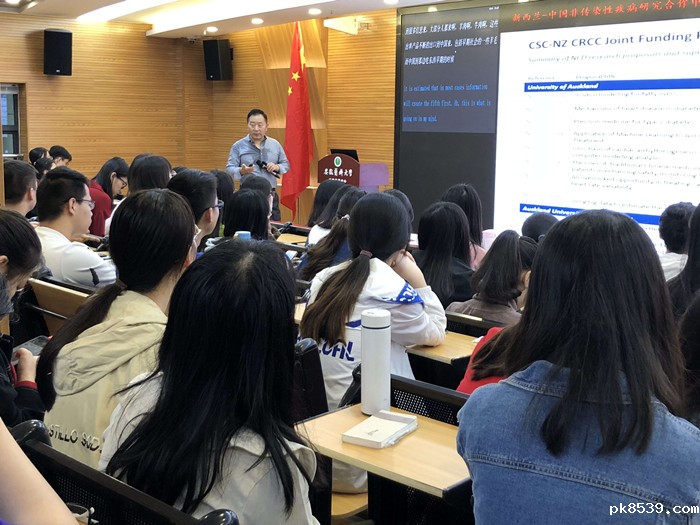 张虎就新西兰-中国非传染性疾病研究合作中心的基本情况及其在新-中健康科学研究合作领域、合作目标以及合作交流活动方面所做的工作作详细介绍。随后,他详细介绍了国家留学基金委与新西兰-中国非传染性疾病研究合作中心博士联合培养资助计划的具体政策及2019-2020年拟开展合作研究项目的相关内容,并就我校师生到新西兰留学、访学合作问题与现场参会人员进行深入沟通交流。
