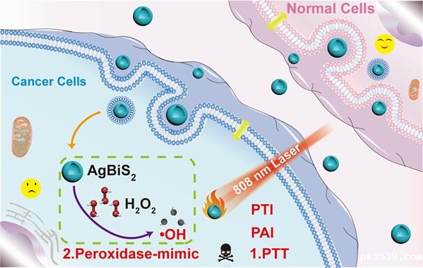 In this study, the research team prepared the hollow nanostructure of ultrastable AgBiS2 hollow nanospheres as a novel medication for tumor treatment. It featured the induction of cancer cell-specific cytotoxicity while exhibiting negligible cytotoxicity toward normal cells. By impacting on the microenvironment of the tumor and the active production of highly reactive hydroxyl radicals, the nanosphere could effectively eliminate cancer-cells and serve as an ideal candidate for targeted therapy of tumor.