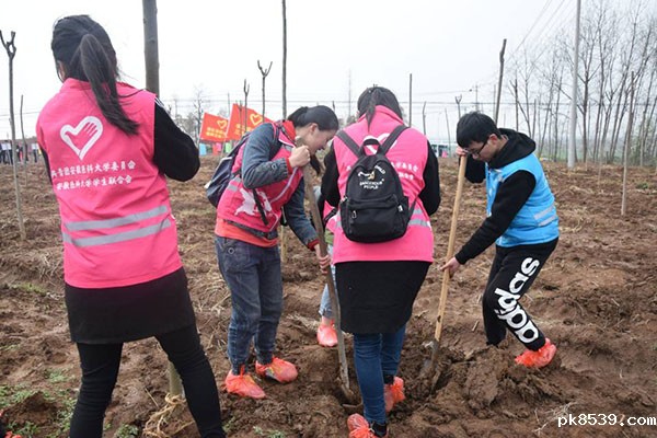 用铁锹挖坑、放树、填土,一棵棵充满生机和希望的树苗很快重回土地的怀抱。经过志愿者们热火朝天的工作,很快,一片树林就成型了。大家纷纷与自己种的树苗合影留念。看着一棵棵柔弱却挺拔的树苗扎根于泥土中,想到日后它们会投下成片的绿荫,志愿者难掩心中的喜悦:“虽然活动已经结束了,但我们依然会坚持我们的 “绿色之行”,继续为环保工作贡献自己的力量”。