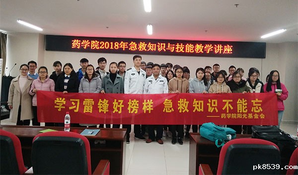 3月18日上午,药学院举办急救知识与技能教学专题讲座。合肥市急救中心赵刚、袁哲佩老师应邀参加活动。