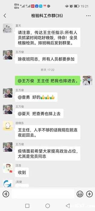 “检验科实行四岗三班排班,24小时连轴转。”检验科科室副主任王万俊刚在工作群里发出排班通知,大家便踊跃报名。