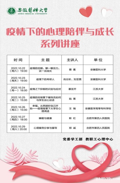 加强人文关怀。“最近总是提不起精神,不知道要做些什么好。”在“心理抗疫”这个特殊的战场上,心理中心专兼职心理咨询师团队成为我校学生不同情绪的“倾听者”与“疏导者”。他们贯穿三个校区,线上线下联动,24小时为学生提供特殊时期心理援助服务,有效帮助学生进行心理调适,并通过“安医学工在线”微信公众号推送心理防疫小贴士,及时引导学生正确看待和接纳自己的心理状态,充分发挥学生“自助、互助、助人”作用,全力创建无疫“心”校园。 注重心理建设。10月22日开始,心理中心面向全校学生组织开展“疫情下的心理陪伴与成长”系列讲座5场,学生反响热烈,并在线上和老师进行探讨交流。2020级护理学院助产学116班廖同学谈道:“很感谢学校组织开展的系列讲座,教会了我如何剖析真实的自己,学会了关爱生命、悦纳自我、善待他人,相信今后我能够以更加积极、健康、向上的态度度过大学时光。”为强化辅导员工作队伍心理援助能力,心理中心还联合教职工心理中心组织开展专题培训讲座4场,提高辅导员识别和应对学生心理危机的能力,切实筑牢学校疫情心理防控的安全屏障,做到守土有责、守土担责、守土尽责,将心理育人工作落到实处,助力校园安全稳定。