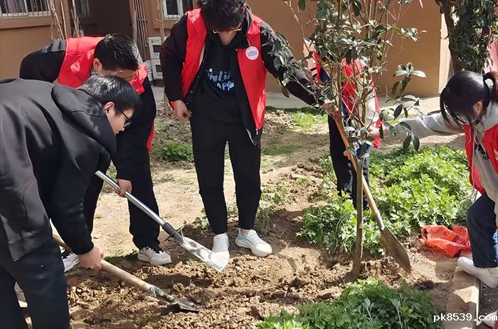 大地添新绿,植树正当时。植树节当天,该院学生前往了宝文花园、朝霞社区等多个社区,在工作人员的指引下有序开展植树栽花活动。现场热火朝天,同学们三人成团相互配合,合理分工,或拿铁锹刨坑、或手持树苗、或拿水盆浇水,共同载下青春树苗,种下未来希望。陈正李同学在活动结束后感慨道:“劳动教育是大学生成长道路上的一门必修课,应该与单纯的学生活动区别开来。我们新时代青年大学生应该更加注重劳动过程所带给我们的特殊体验,那是在理论课堂上所学不到的。”