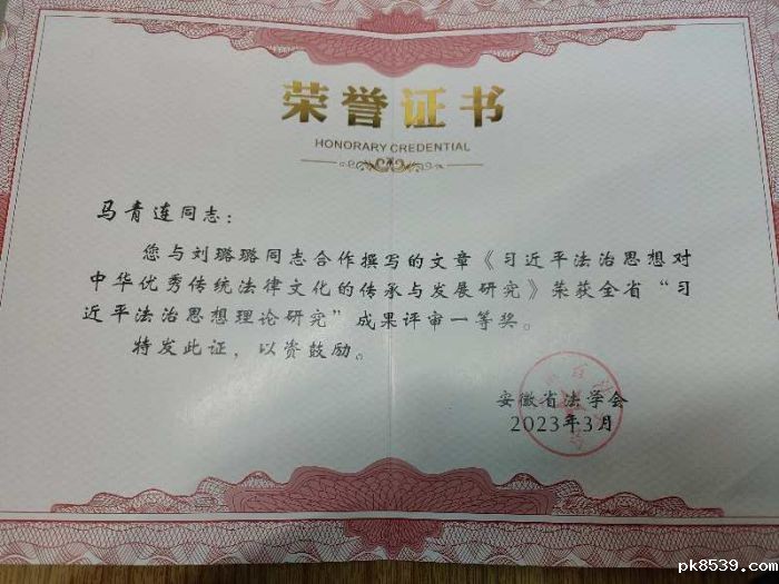 近日,安徽省法学会组织开展的深入学习研究阐释习近平法治思想理论研究成果征集活动公布评审结果,法学院在集体项目和个人项目中斩获多项荣誉,该院马青连教授《习近平法治思想对中华优秀传统法律文化的传承与发展研究》荣获一等奖,学院荣获“优秀组织奖”。