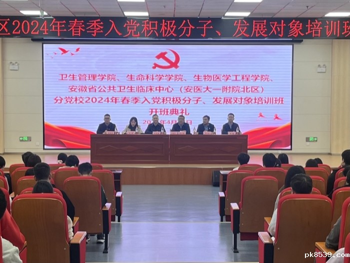 4月12日下午,卫生管理学院、生命科学学院、生物医学工程学院、安徽省公共卫生临床中心(安医大一附院北区)等四家单位分党校,在东校区联合举办2024年春季入党积极分子、发展对象培训班开班典礼。校党委组织部副部长、党校常务副校长白亮亮出席开班典礼并讲话。生命科学学院党委书记沈慧宣读关于举办本次培训班的有关通知文件,卫生管理学院党委书记赵云峰主持开班典礼。一附院北区党委副书记、副院长邓洪禹,卫生管理学院党委副书记胡鹏、生物医学工程学院党委副书记周晓伟出席。